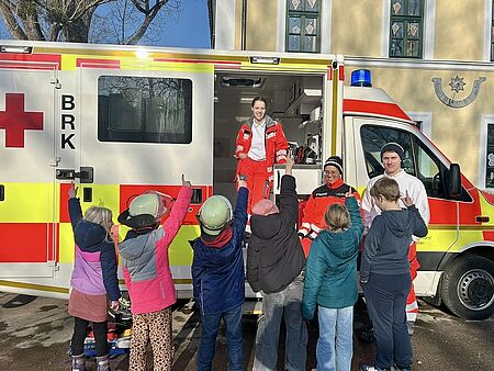 Am Donnerstag besuchten drei ehrenamtliche Helfer des Deisenhofener Roten Kreuzes die Sanitäter-AG der Grundschule Oberhaching mit einem Rettungswagen, um den Kindern zu zeigen, wie und bei welchen Notfällen die Ausstattung eines Rettungswagens zum Einsatz kommt.