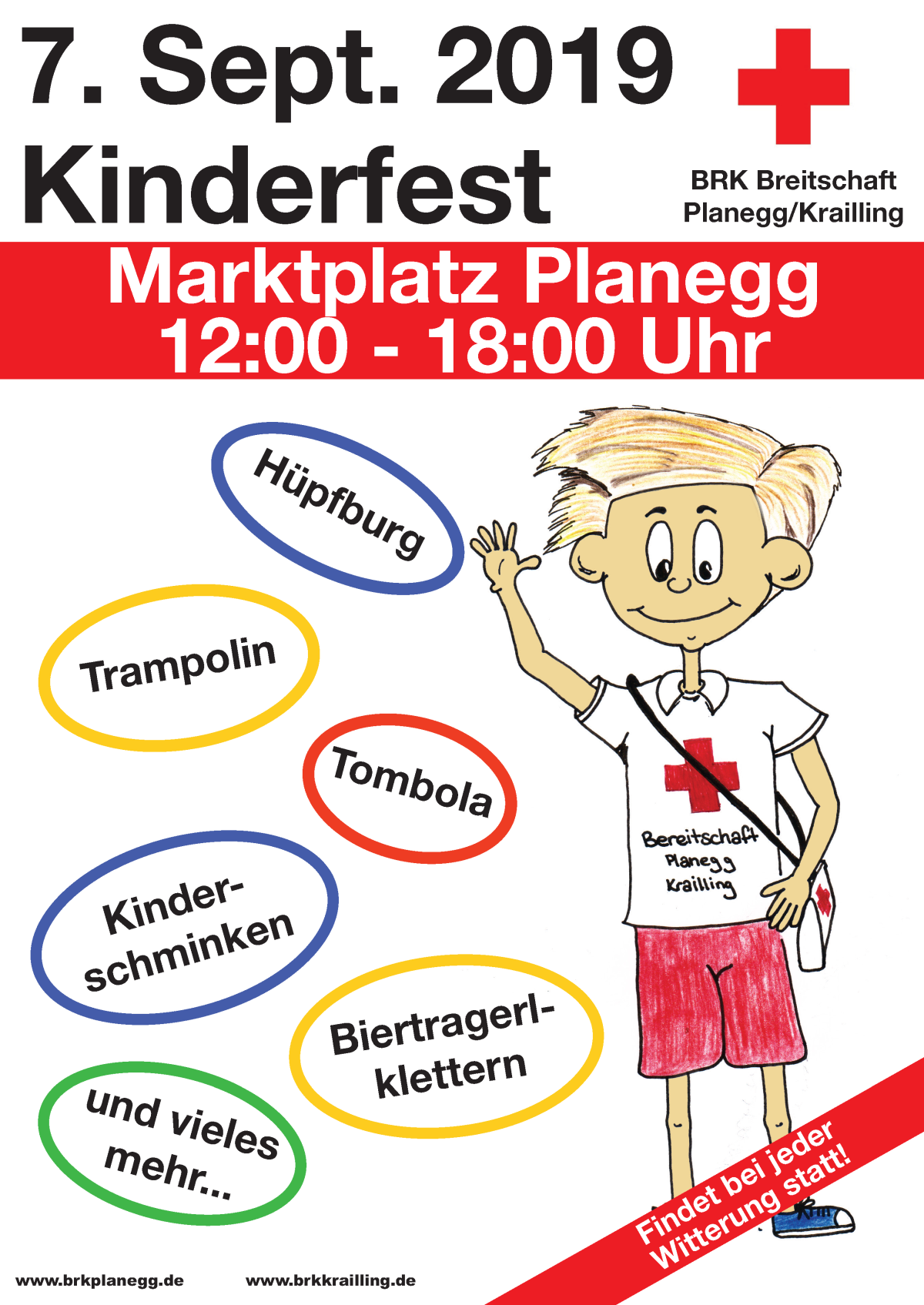 Am 7. September findet von 12 bis 18 Uhr auf dem Marktplatz in Planegg das Kinderfest des Roten Kreuzes statt.