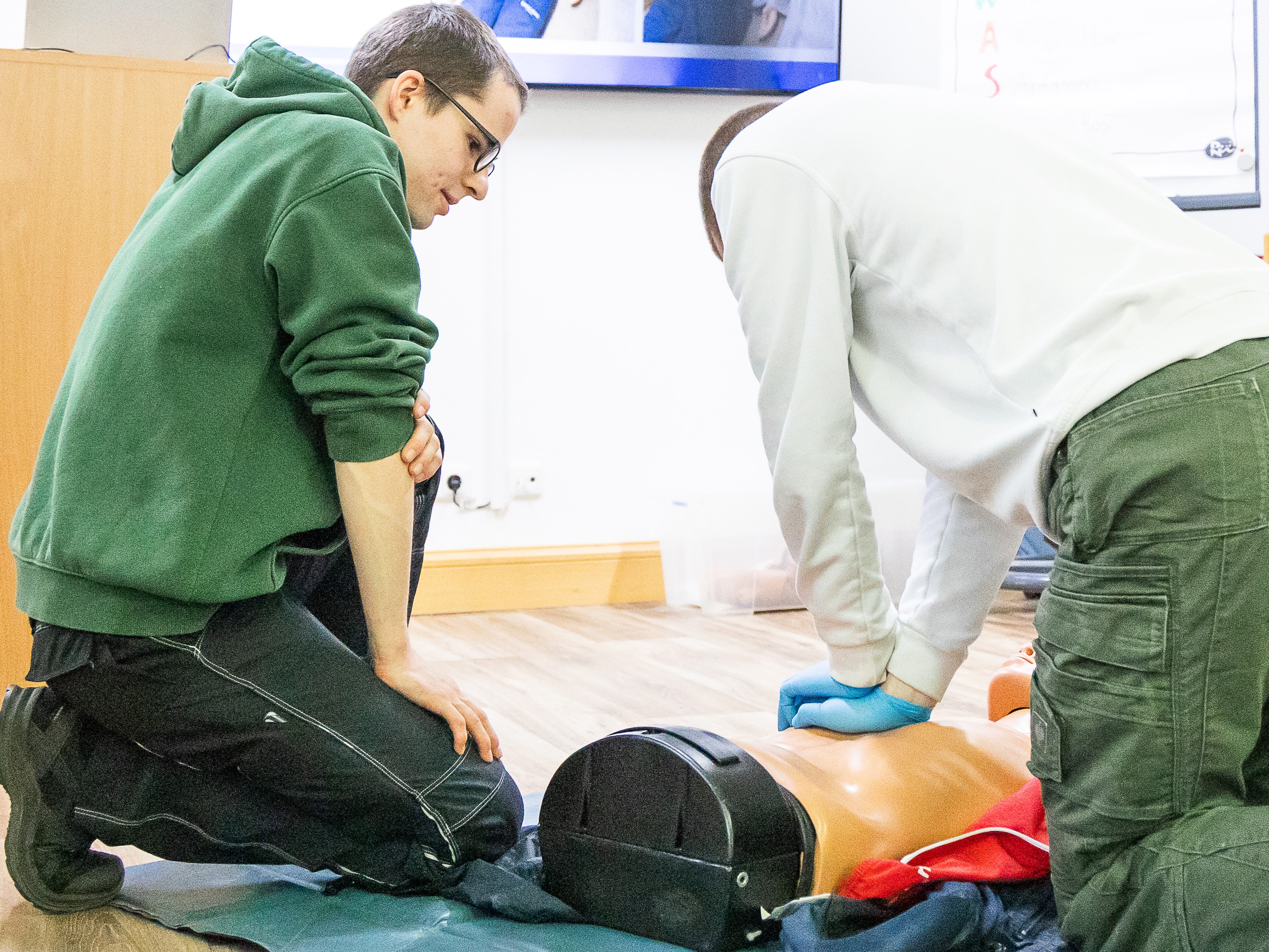 Die ehrenamtlichen Deisenhofener Rotkreuzler*innen üben regelmäßig die Herz-Lungen-Wiederbelebung und den Umgang mit dem Defibrillator. Am Freitag war es wieder so weit.