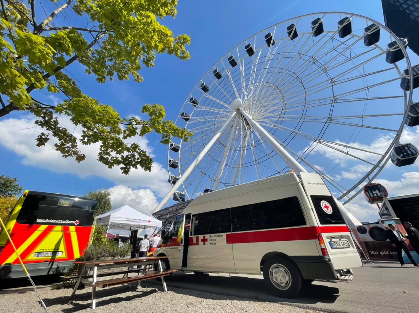 Zum Start der bundesweiten Impfaktionswoche #HierWirdGeimpft unterstützt die BRK Bereitschaft Ismaning mit der Bereitstellung des Betreuungs-Großraumrettungswagen die Sonderimpfaktion vor dem Riesenrad Umadum in München, zu der auch Bayerns Gesundheitsminister Klaus Holetschek kam, um noch einmal fürs Impfen zu werben.