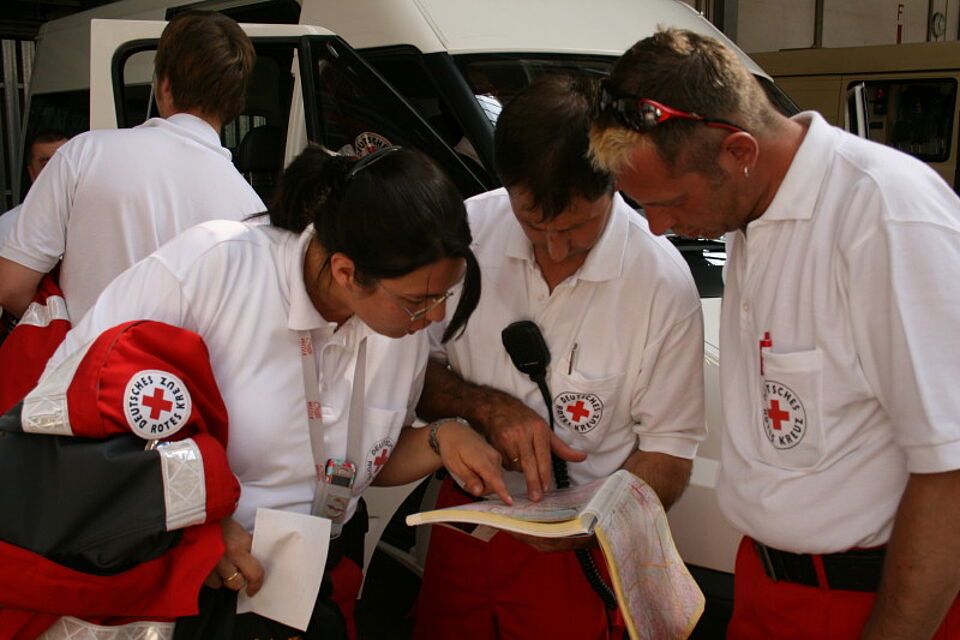Das Münchner Rote Kreuz stellt zwei Schnelleinsatzgruppen Behandlung bereit. Personal und Fahrzeuge werden jeweils aus vier verschiedenen Bereitschaften gestellt.